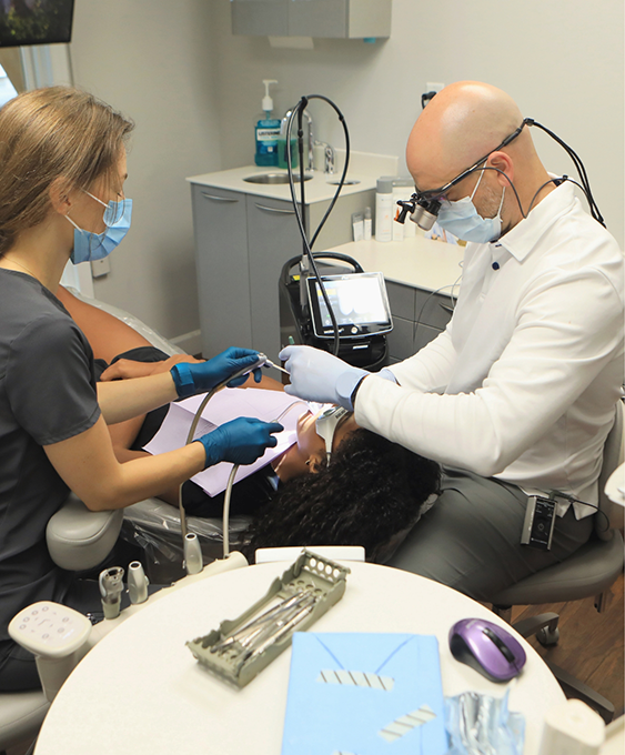 Dr. David is an integrative dentist, meaning he will look through the lens of your whole health when he is examining your oral health. He will speak with your providers when needed to make sure that your oral health is not treated separate from your overall health.